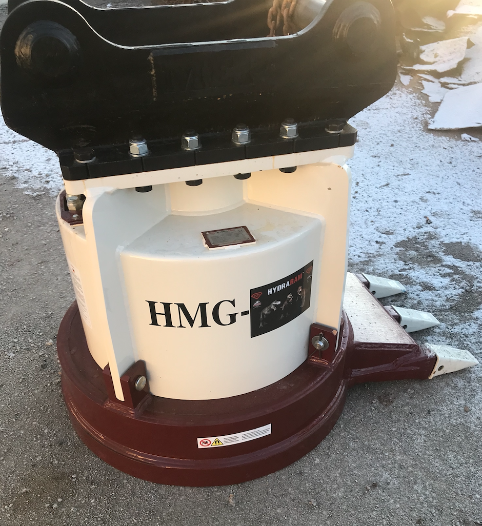 HMG Hydraulimagneettia käytetään erottelemaan teräkset pulveroidun betonin seasta. HMG mallit on saatavilla kynsillä tai ilman. T malli, jossa on kynnet toisellapuolella magneettia, toimii tehokkaasti kun tarvii sekoitella betonikasaa.